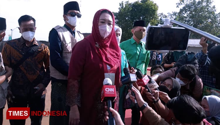 TIMES Kendari/Putri Abdurrahman Wahid (Gus Dur) Yeny Wahid saat diwawancarai oleh awak media. (FOTO: Moh Ramli/TIMES Indonesia)