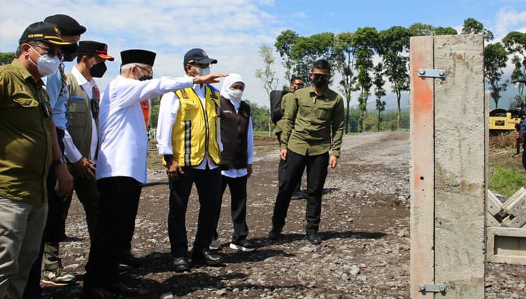 TIMES Kendari/Sekjen PUPR RI Mohammad Zainal Fatah dampingi Wapres RI KH Ma'ruf Amin meninjau lokasi pembangunan Hunian Sementara (Huntara) bagi korban terdampak erupsi Gunung Semeru di Desa Sumbermujur, Kecamatan Candipuro, Kabupaten Lumajang.