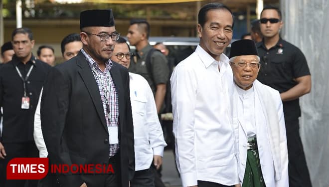 TIMES Kendari/Presiden terpilih, Jokowi, saat tiba di Gedung KPU RI, Minggu (30/06/2019). (FOTO: Hasbullah/TIMES Indonesia).